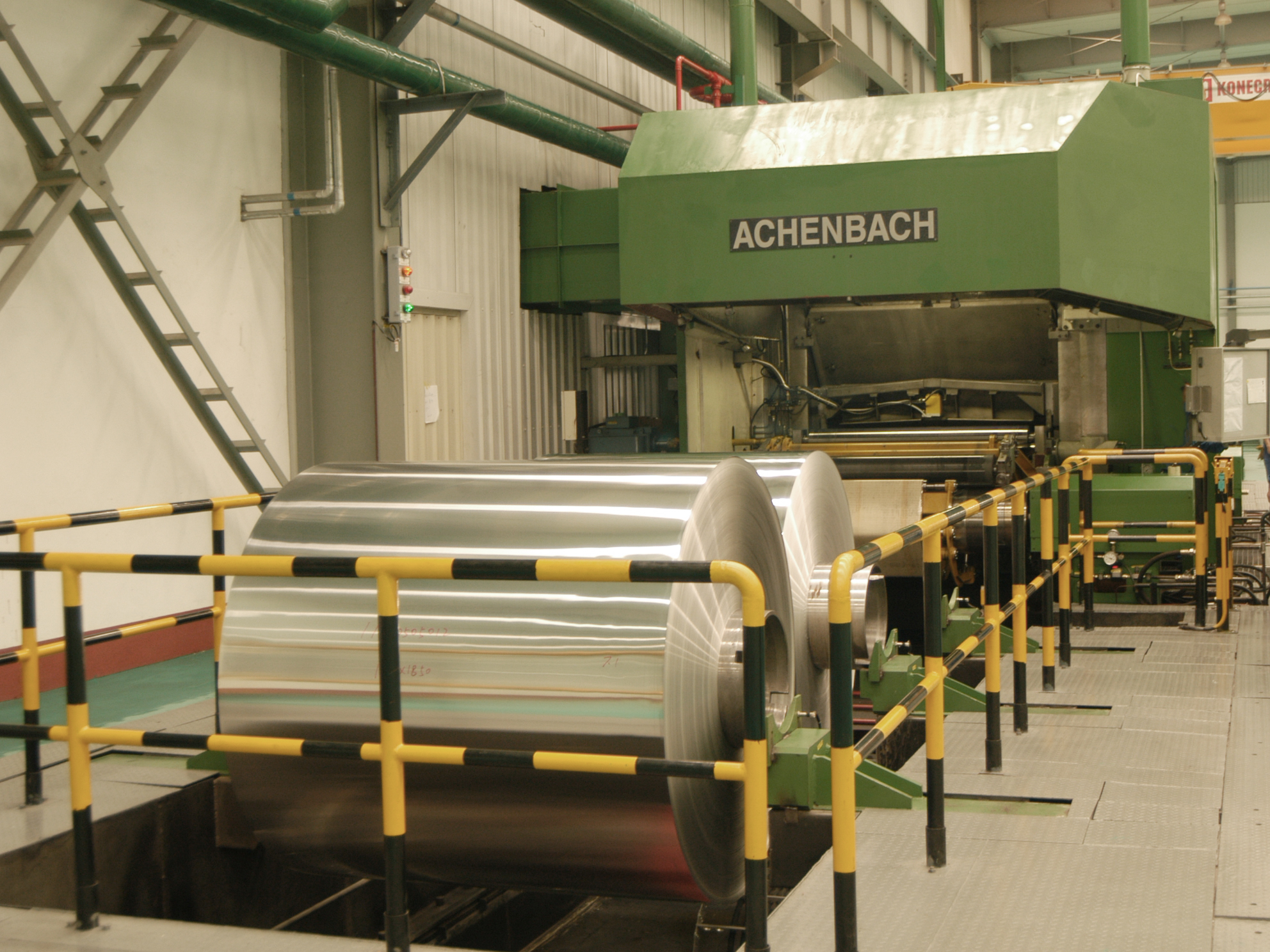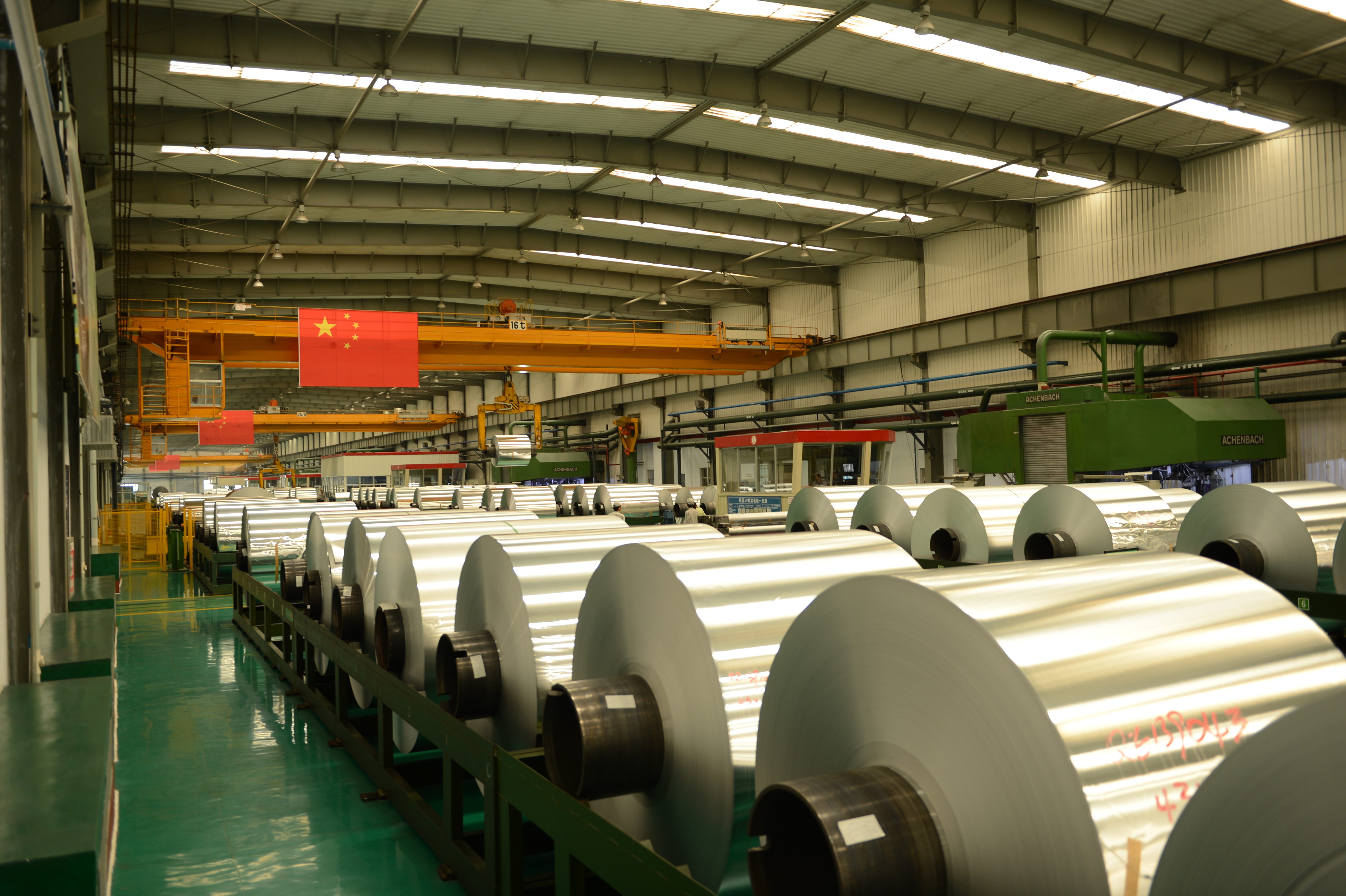 鋁箔廠引進(jìn)德國(guó)Achenbach的鋁箔軋機(jī),同時(shí)配備了德國(guó)Kampf的合卷機(jī)、分切機(jī)、厚剪機(jī),以及德國(guó)Herkules磨床等整套世界一流裝備。主要經(jīng)營(yíng)電池箔、無菌包箔、鋁塑膜箔、醫(yī)藥軟包箔、硬態(tài)藥箔、高檔煙箔和金卡箔、蒸煮袋箔、封口箔、電子標(biāo)簽箔等產(chǎn)品。成品的最大寬度1850mm,最小厚度為0.0045mm,并可以根據(jù)客戶的要求生產(chǎn)不同規(guī)格的單、雙面光鋁箔。在短短的時(shí)間內(nèi),鋁箔廠已經(jīng)成為高端鋁箔產(chǎn)品的主要供應(yīng)商。
