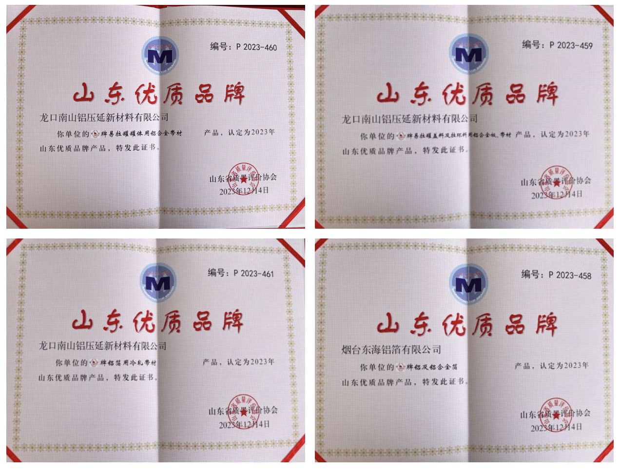 其中,南山鋁業(yè)被山東省質(zhì)量評(píng)價(jià)協(xié)會(huì)評(píng)定為山東省優(yōu)質(zhì)品牌的產(chǎn)品有:“南山牌易拉罐罐體用鋁合金帶材”“南山牌易拉罐蓋料及拉環(huán)料用鋁合金板、帶材”“南山牌鋁箔用冷軋帶材”及“南山牌鋁及鋁合金箔”等。